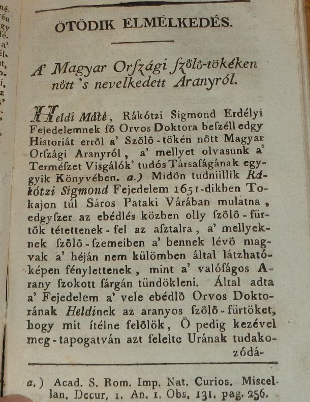 V. A Magyar Országi Szőlő-tőkéken nőtt s nevelkedett Aranyról.