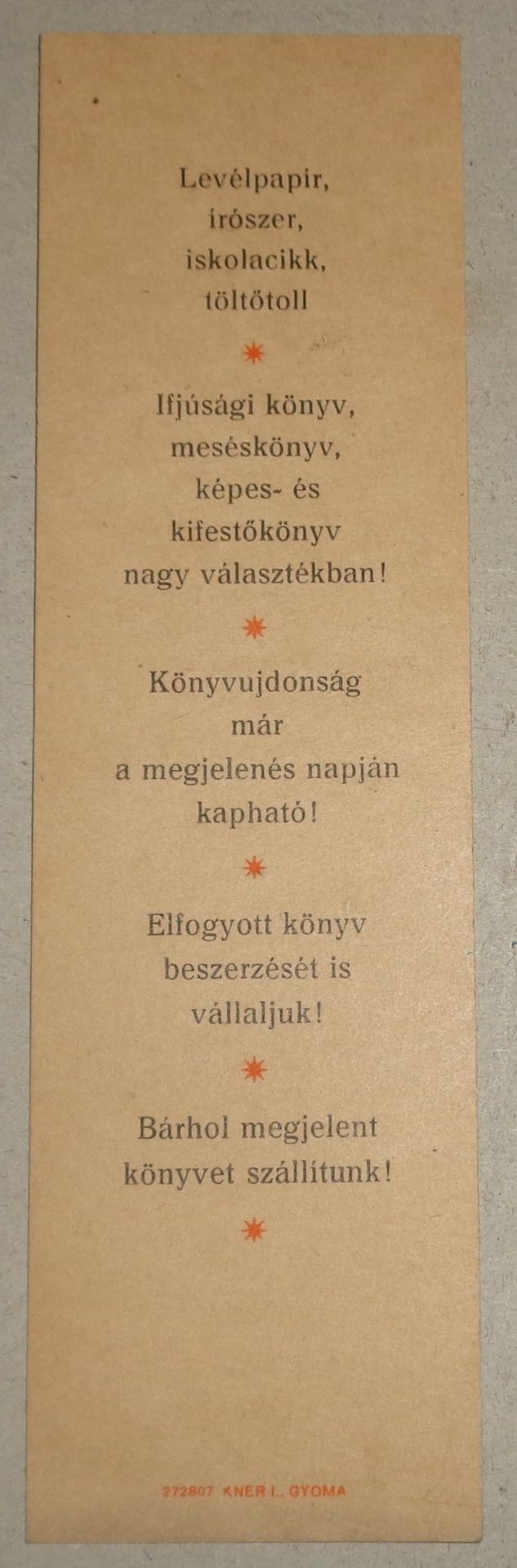 without place. without year. without publisher. 1 p. . Hungarian language.