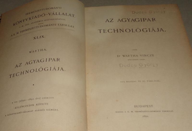 Wartha Vincze: Az agyagipar technológiája.