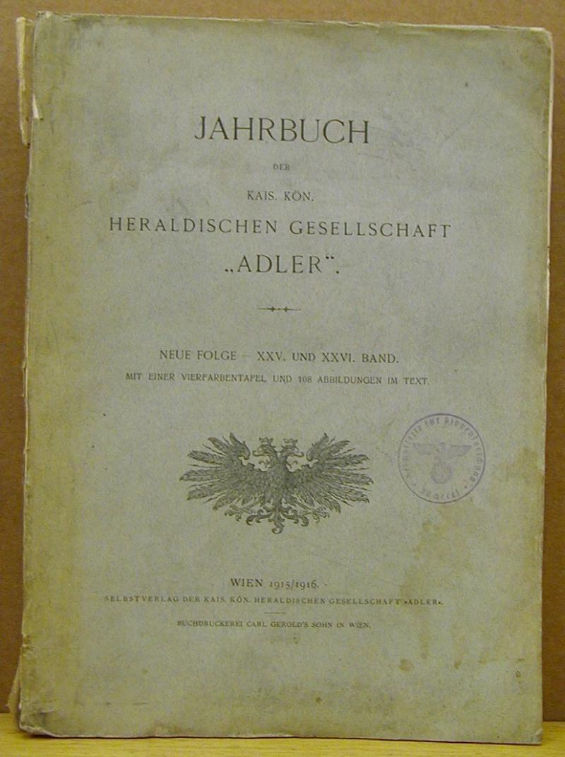 genealogy, heraldry, honours put into the basket JAHRBUCH DER KAIS. KöN. HERALDISCHEN GESELLSCHAFT "ADLER".