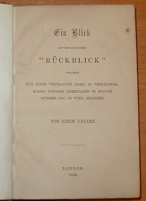 ( Széchenyi István): EIN BLICK AUF DEN ANONYMEN RüCKBLICK.