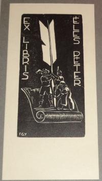me6069. engraving/Ex libris/Hungarian put into the basket Füzessy Gyula, (Füzesy Gyula): Ex libris Éles Péter.without year. wood engraving.size: 8x4 cm. page: 11x5 cm. mounted on paperboard. price: 1.54 EURO | ![]() |