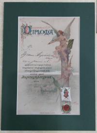 me6253. metszet/Vegyes Basch Árpád: Diploma T. Braun Árpádné 1896. évi június 8-án az ezredéves orsz. kiállítást látogatásával megtisztelte s nevét a Nemzeti Muzeumnak örök emlékül szánt Aranykönyvbe beírta.Bp. 1896. litográfia.méret: 19x12 cm. ELKELT | ![]() |