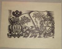 me6003. metszet/Ex libris, kisgrafika/magyar berak a kosárba Fery Antal: Ex libris Dr. Ladislaus Petrikovits.1939. .méret: 5x3 cm. lapméret: 6x5 cm. ár: 900 FORINTHátlapon felragasztás nyoma.