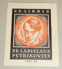 me6000. metszet/Ex libris, kisgrafika/magyar berak a kosárba Fery Antal: Ex libris Dr. Ladislaus Petrikovits.1938. .méret: 5x3 cm. lapméret: 8x4 cm. ár: 1200 FORINTHátlapon felragasztás nyoma. Ceruzával szignált.