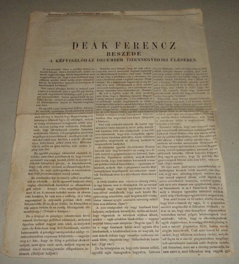 Deák Ferencz: Beszéde a Képviselőház december tizennegyediki ülésében.