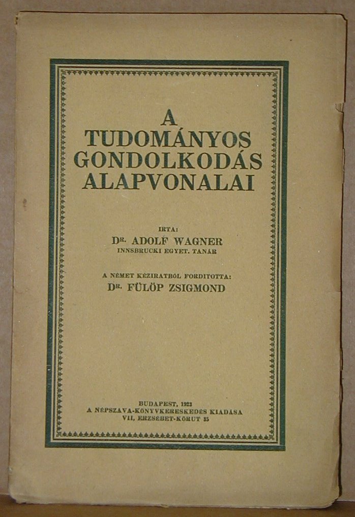 Adolf Wagner: A tudományos gondolkodás alapvonalai.