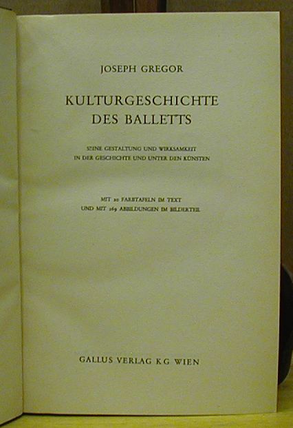 Gregor, Joseph: Kulturgeschichte des Balletts.