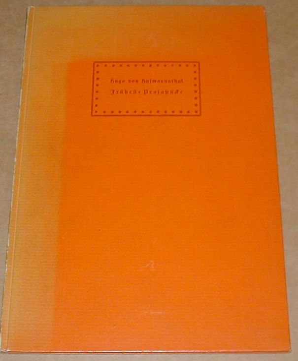 Hofmannsthal, Hugo Von,: FRÜHESTE PROSASTÜCKE