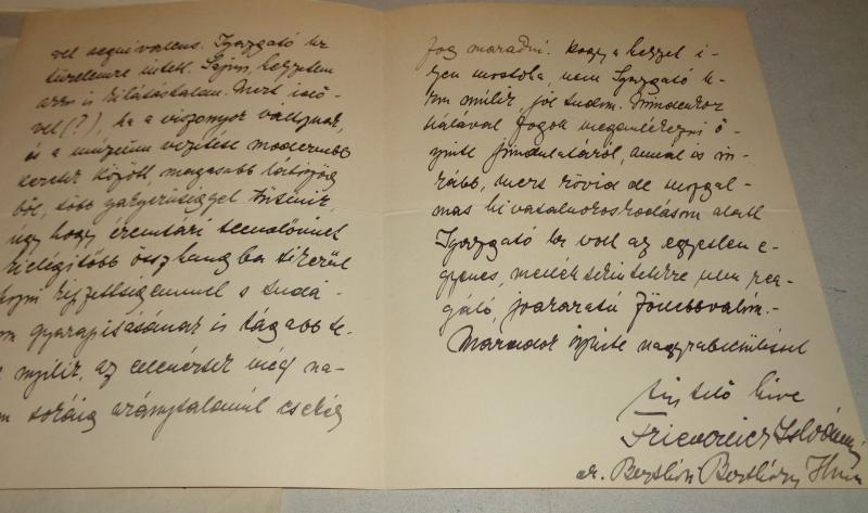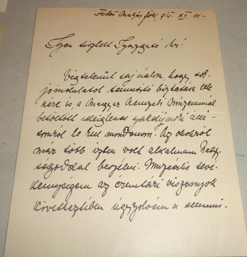 Friedrich Istvánné felmondó levele [Varjú Elemérhez] az éremtár akkori igazgatójához.