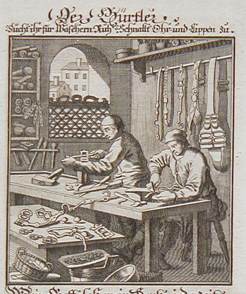 Weigel Christoph: Der Gürtler ( ővkészítő, hevederkészítő, girdle maker)).