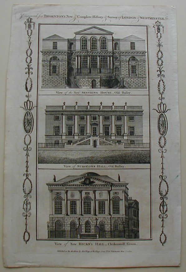 Thorton William: View of the New Sessions House , Old Bailey. View of Surgeons Hall , Old Bailey. View of New Hicks's Hall, Clerkenwell Green.