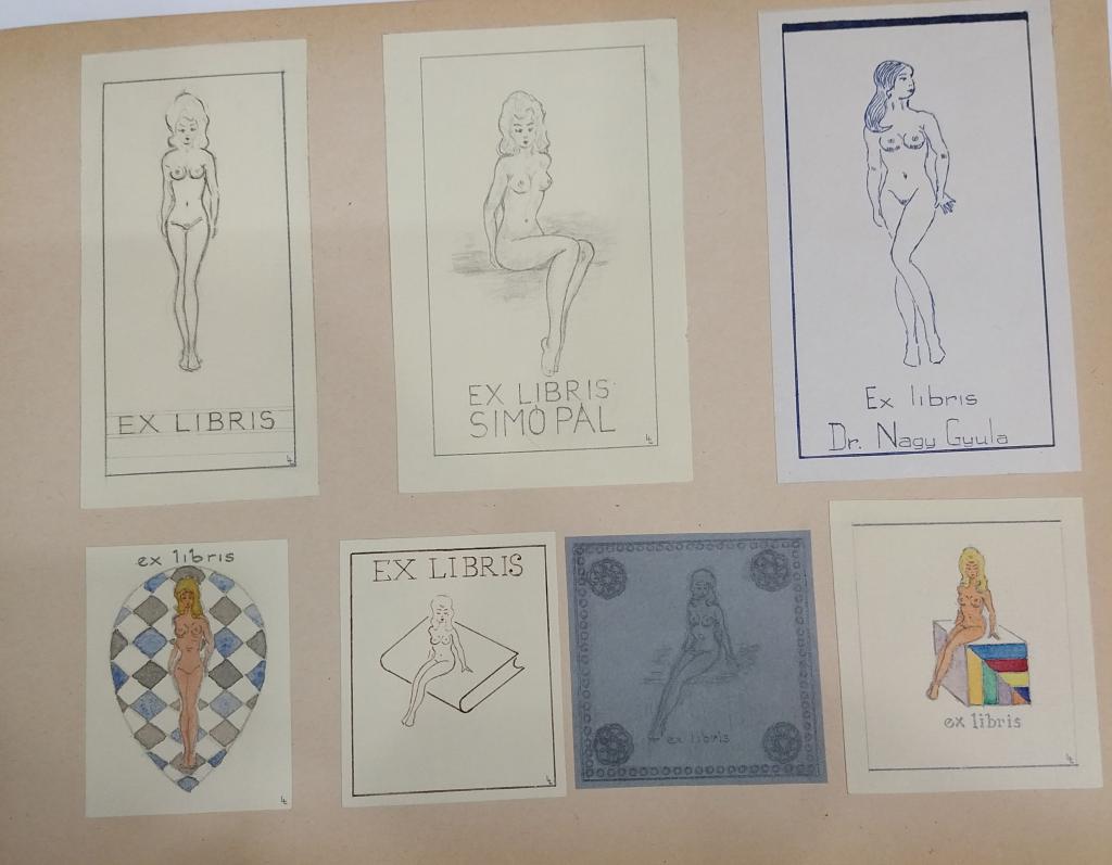 Lendvai László 1920-2014: Ex libris tervei ceruza, tus, 78 db rajz albumba b