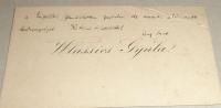 Wlassics Gyula névjegye, hátán kézírással